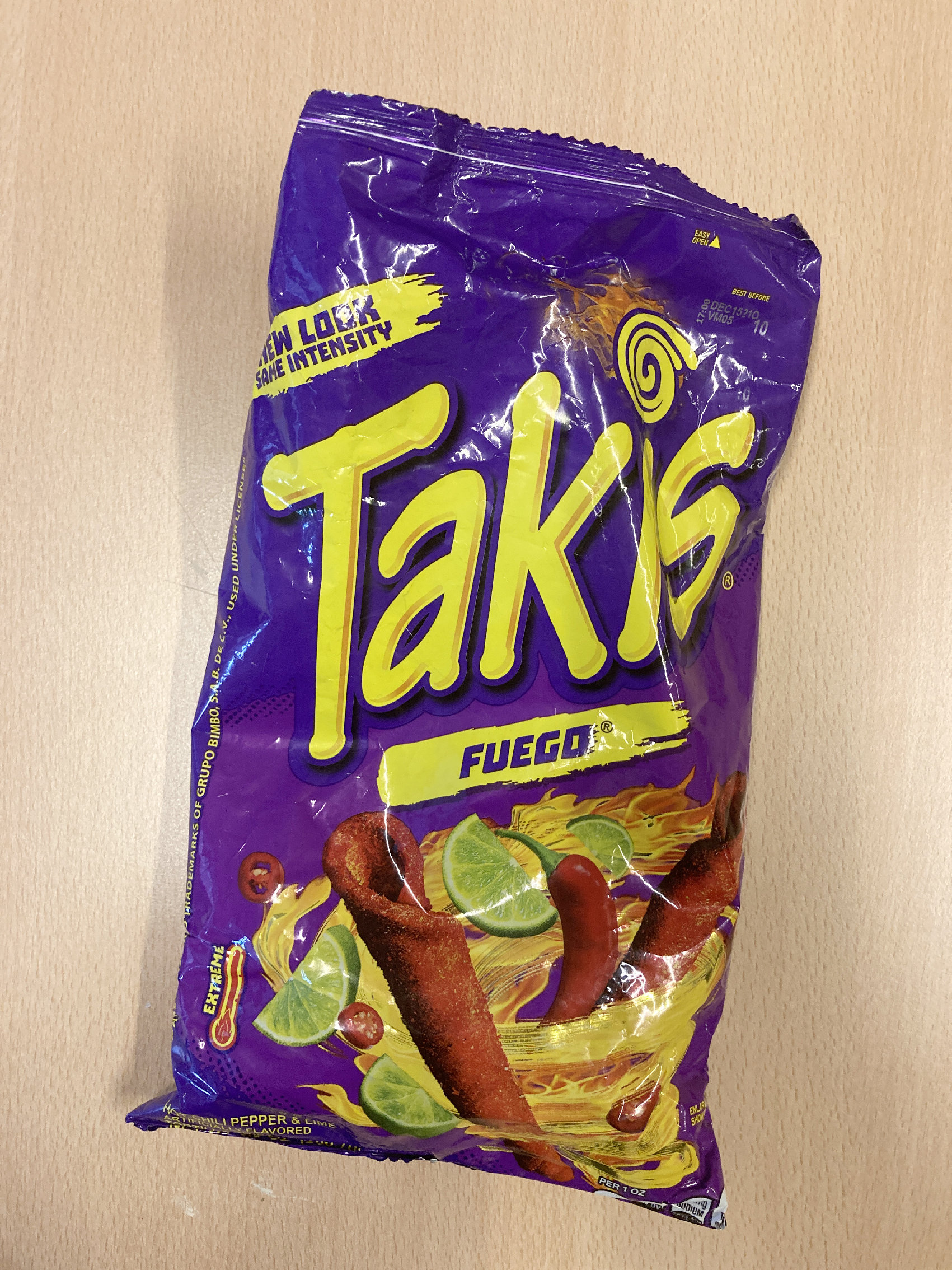 Er zijn veel foto’s gemaakt van (lege) chipsverpakkingen op straat. Een meisje vertelt dat ze na het avondeten regelmatig chips eet. Ze krijgt dan een zak van haar ouders en neemt die mee naar buiten. De chips ‘Takis Fuego’, bijvoorbeeld, zijn een hype op TikTok en favoriet bij de kinderen, ondanks dat ze vrij prijzig zijn (ongeveer 5 euro per zak). De kinderen delen een zak van deze chips met elkaar tijdens een van de bijeenkomsten. Ze bespreken vervolgens met de onderzoekers wat ze van deze chips vinden: “Het is ongezond, maar eigenlijk ook niet. Eigenlijk is het gewoon peper. Als die peper er niet op is, is het helemaal geen smaak, niks. Daarom is het niet ongezond”.