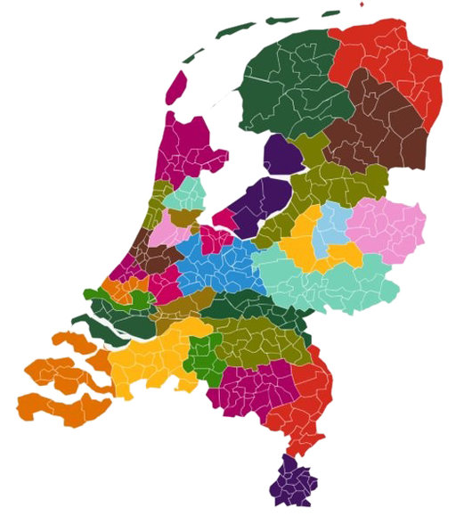 Figuur 1 De zorgkantoorregio’s in Nederland. De lijnen geven de gemeentegrenzen aan (Bron: De Juiste Zorg op de Juiste Plek).