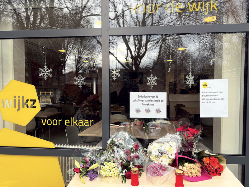 ‘Naast de slachtoffers kwamen ook veel buurtbewoners bij ons langs, die graag iets voor de getroffenen wilden doen. Daarom hebben we in het wijkcentrum een condoleanceregister geopend en een plek gemaakt om bloemen neer te leggen. Ook hebben we op 14 december, samen met anderen, een grote bijeenkomst georganiseerd in de Adventkerk in Mariahoeve. Zo’n 250 buurtbewoners, nabestaanden en andere betrokkenen vonden daar steun bij elkaar. Dit gaf merkbaar rust in de wijk: na die dag werd het wijkcentrum minder bezocht en zijn we weer overgegaan naar de reguliere openingstijden.’