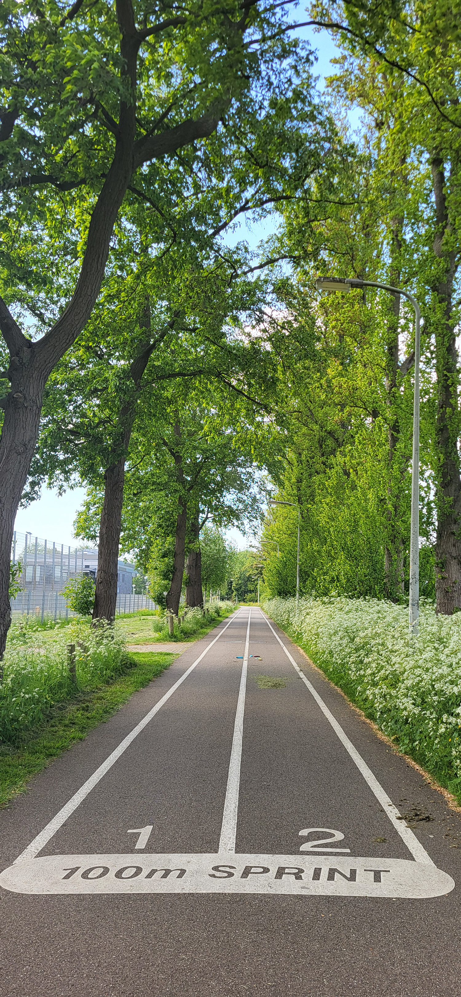 Foto: sprintbaan op beweegroute in wijk Bouwlust en Vrederust (bron: De Haagse Hogeschool)